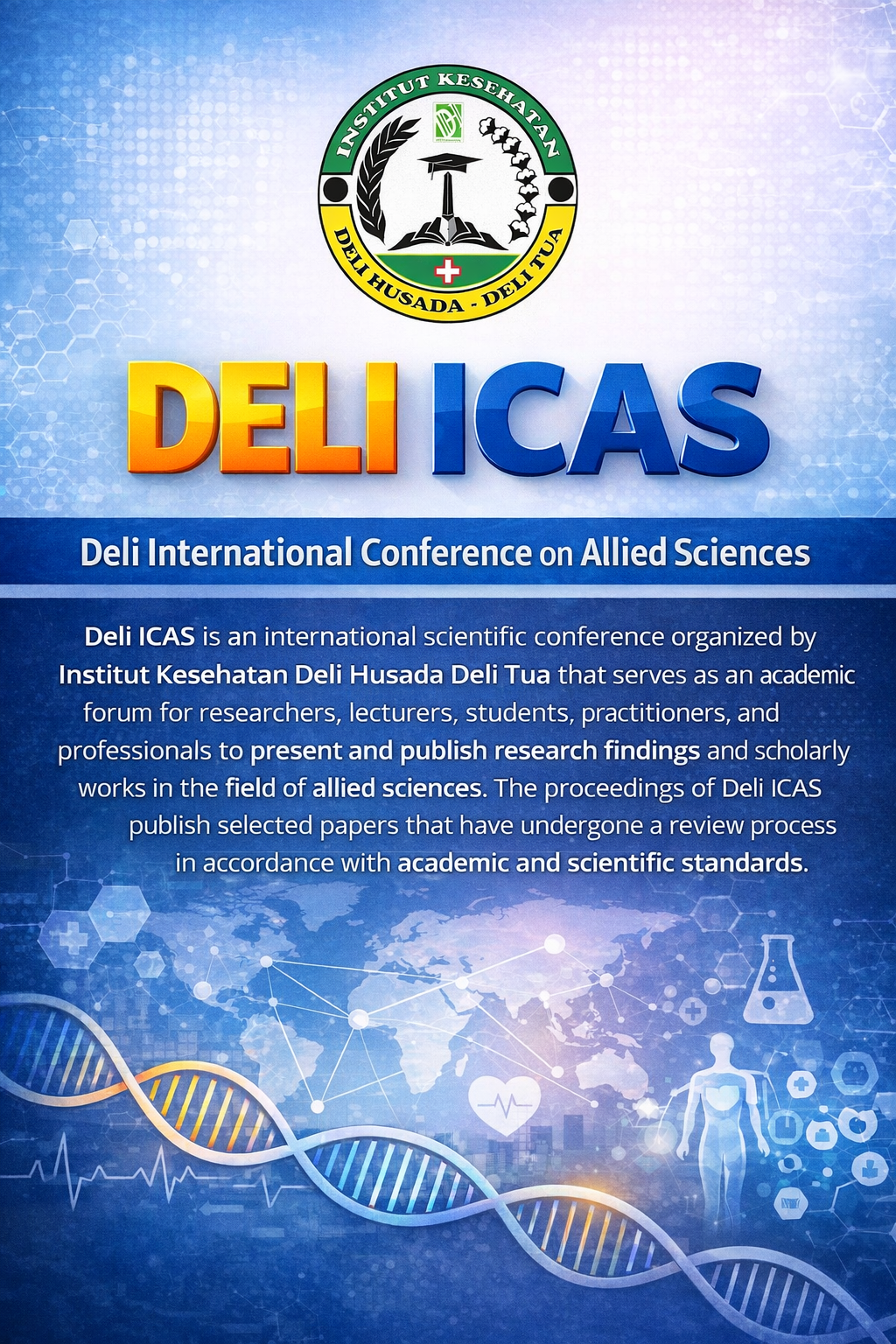 Deli International Conference on Allied Sciences (Deli ICAS) is an international scientific conference organized by Institut Kesehatan Deli Husada Deli Tua that serves as an academic forum for researchers, lecturers, students, practitioners, and professionals to present and publish research findings and scholarly works in the field of allied sciences. The proceedings of Deli ICAS publish selected papers that have undergone a review process in accordance with academic and scientific standards.